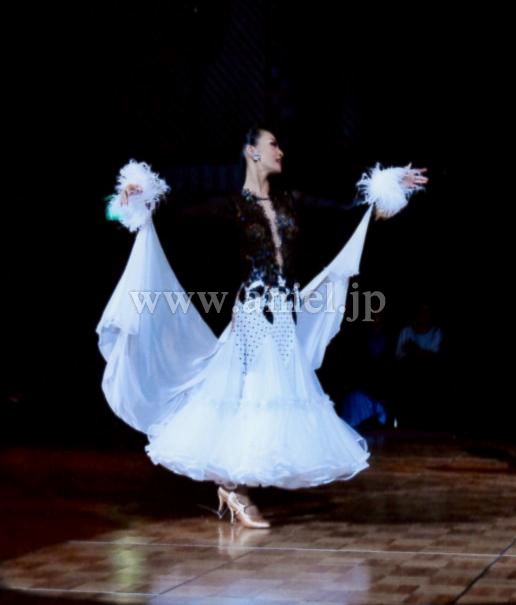 スカートは途中で切り替えになっていて、切り替えの上は下がパールシフォン、上がオーガンジーの2枚重ね、下はオーガンジーを重ねて裾に細いホースヘアが入っています。スカートはタックが多くて、生地を大量に使っていますのでボリュームがあって踊るとぶわんと膨らみます。