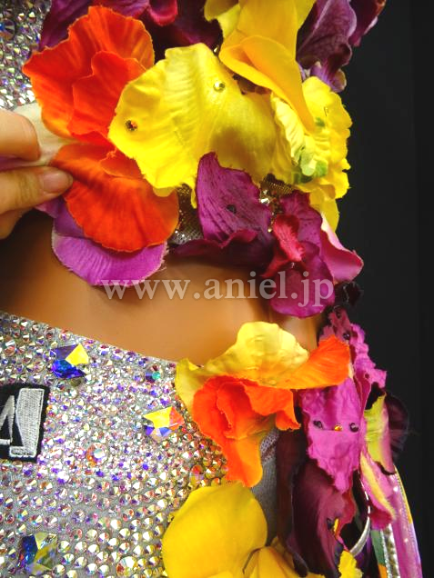 お花の髪飾り付き。