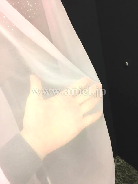 ジョーゼット生地がふんわりと舞います。ドレープ部分は透け感のある生地です。