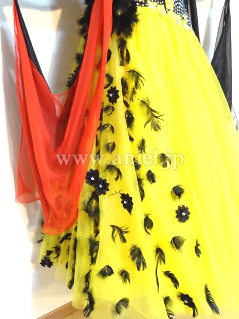 ボリュームタップリのスカート。フロアで目立つイエローカラーです。