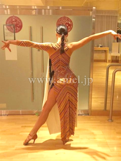正面と背中側とのデザインが全く異なる格好いいドレスです。