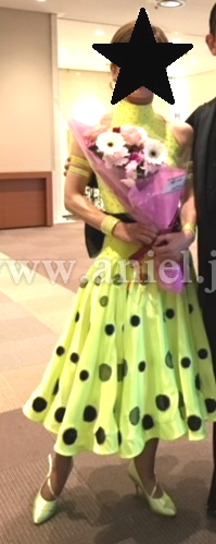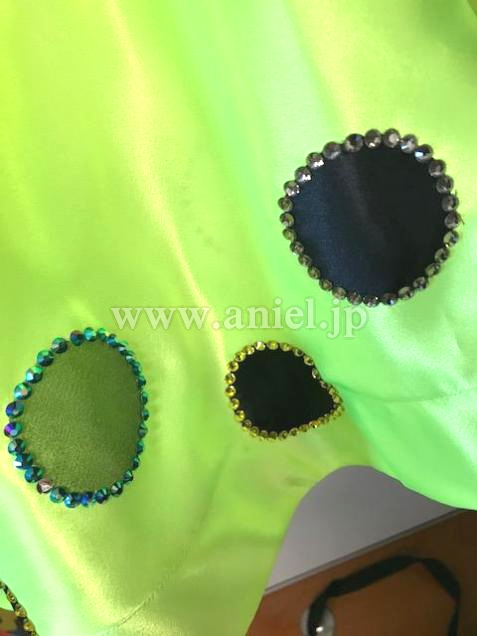 スカートの水玉模様はすぺてアップリケで、周囲をラインストーンでデコレーションしていますので