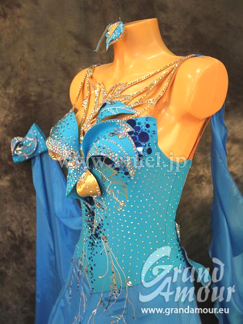 胸元やヒップには立体フラワーモチーフが装飾され、立体感を出しています。