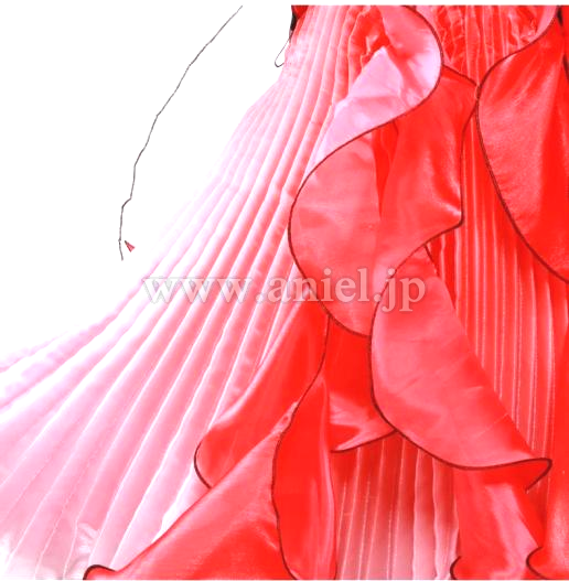 プリーツ状のフロート、スカートが美しいデザイン。