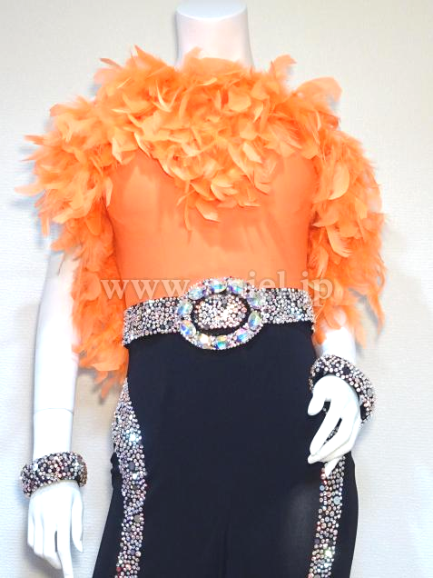 胸元に羽根を使用し、ボリュームが出るデザイン。