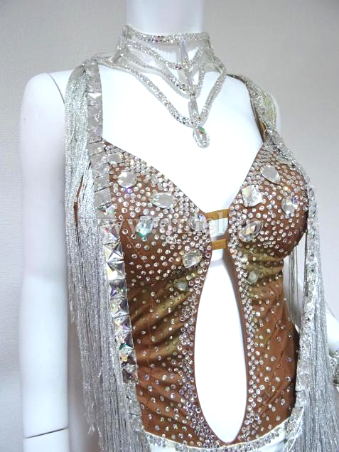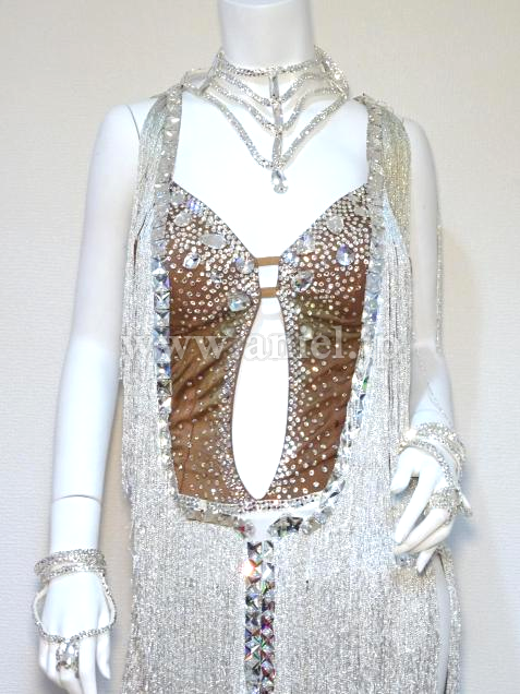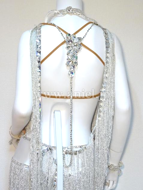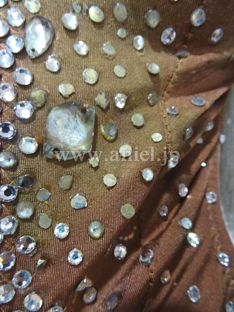 大粒のストーンを使い、かっこよくデザイン。スカートの中央が長くなっていますので、足が長く見えます。