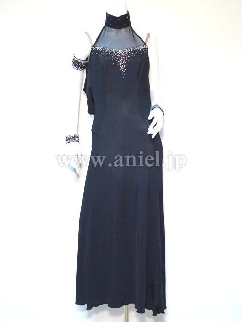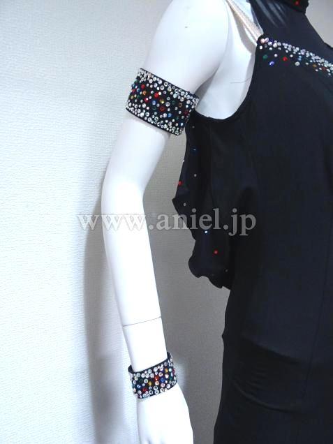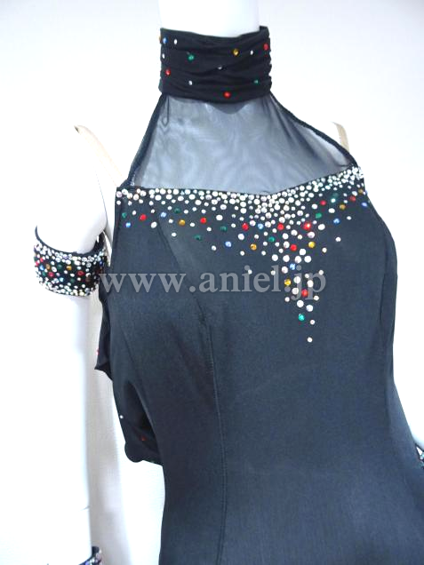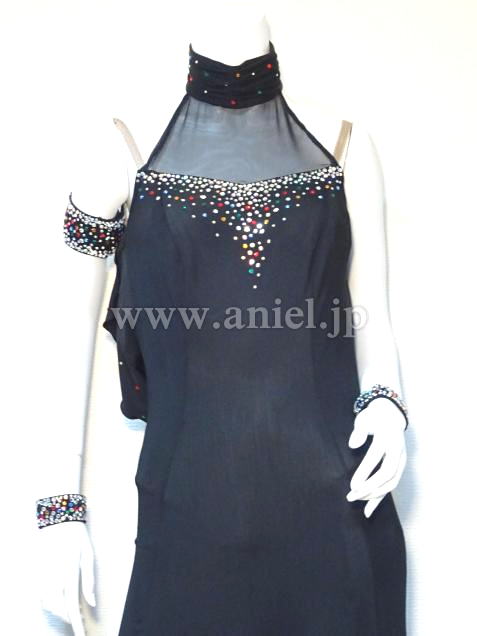 ハイネックスタイルで胸元に安心です。カラフルなストーンをMIXしています。