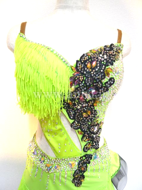 後ろのフリルスカートが、とても印象的。とても軽くて良く踊るラテンドレスです。