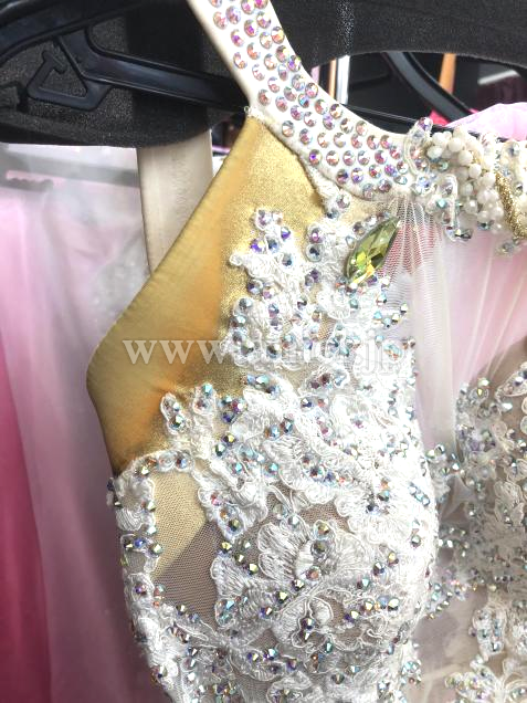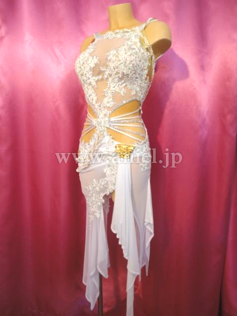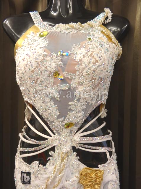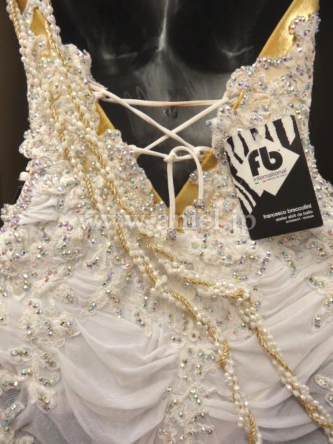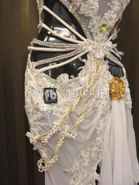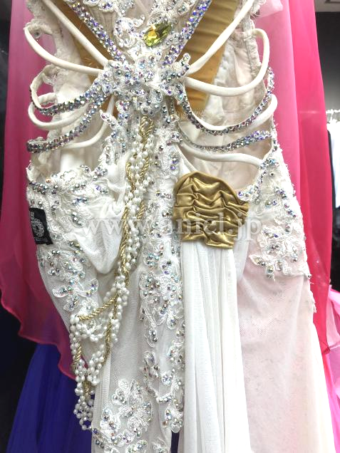美しい白にゴールドカラーが上品に映えるドレスです。