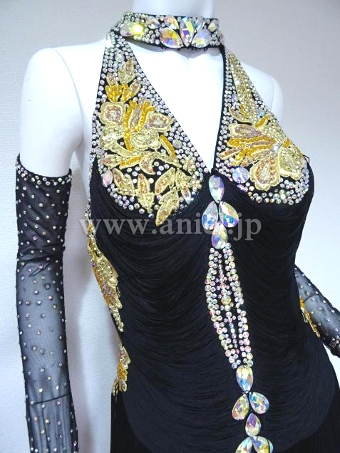 ゴールドのモチーフレースの装飾がアクセントになっていて豪華です。