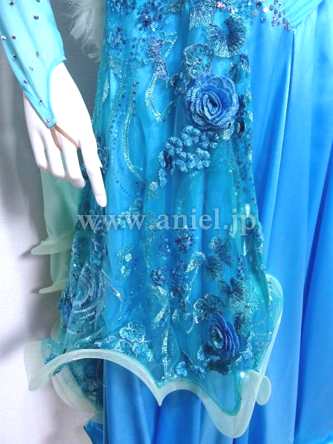 右腰のスカートにレース生地が使われ個性的なデザインとなっています。