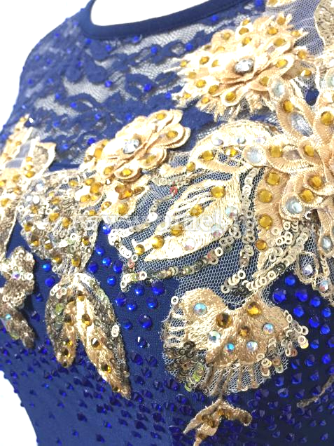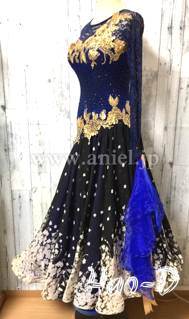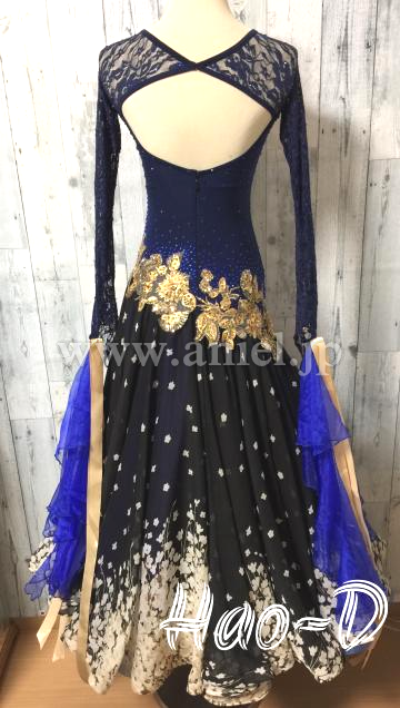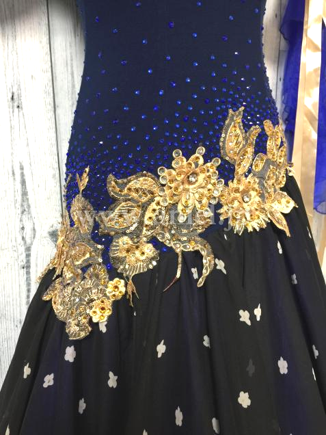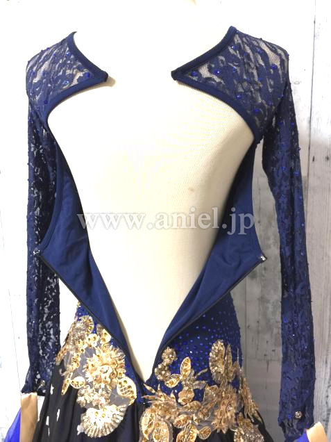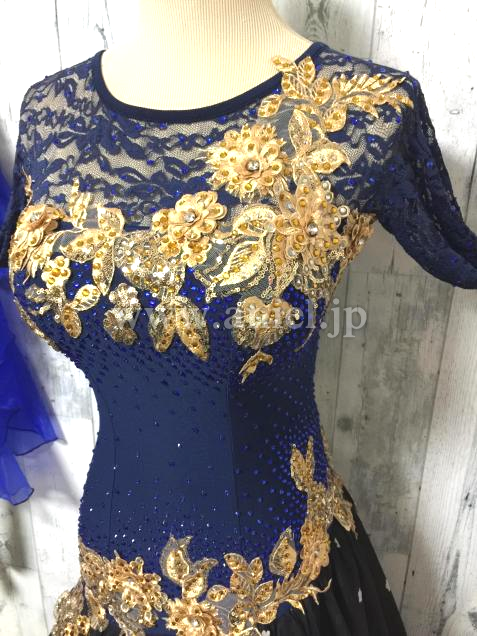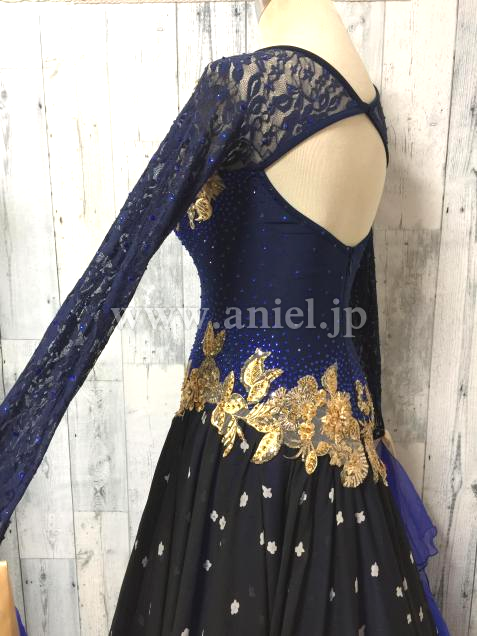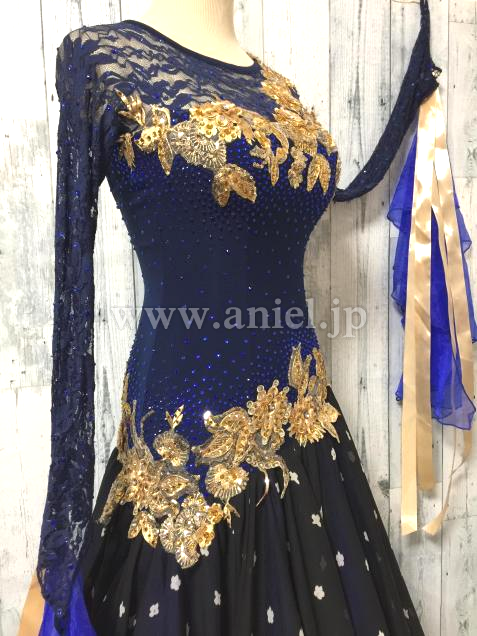 胸元とヒップにゴージャスなゴールド刺繍のモチーフを配置し、ボディーをスッキリ見せる