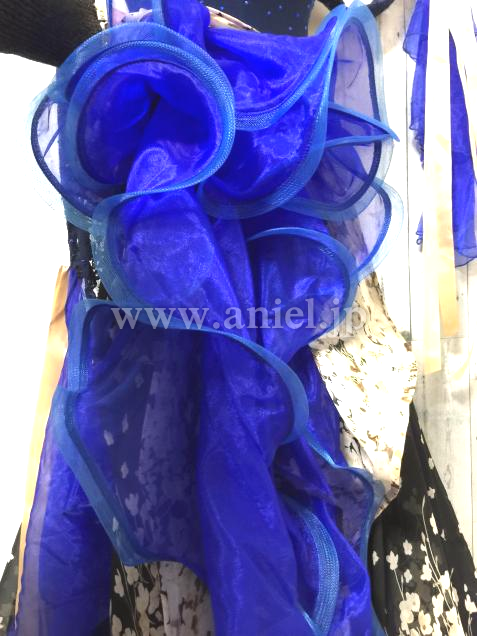 花柄ジョーゼット1枚、青色オーガンディ2枚、計三枚仕立て