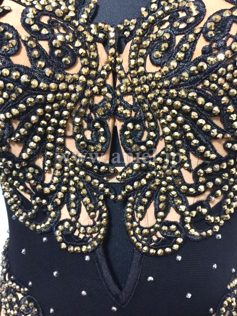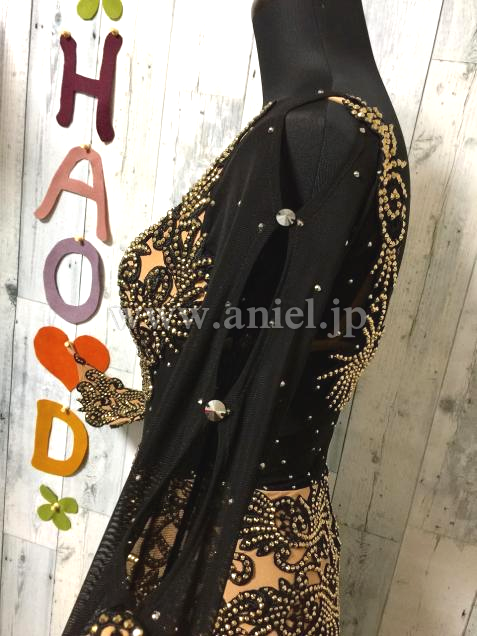 身頃と袖のモチーフ部分は肌色の2wayストレッチ生地で補強したシースルー風仕立て