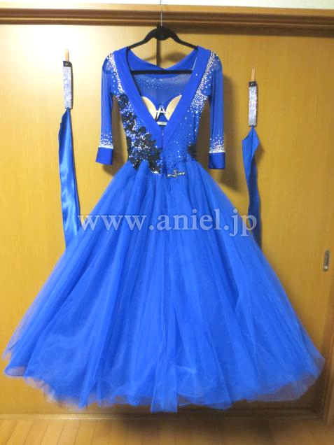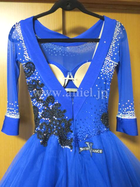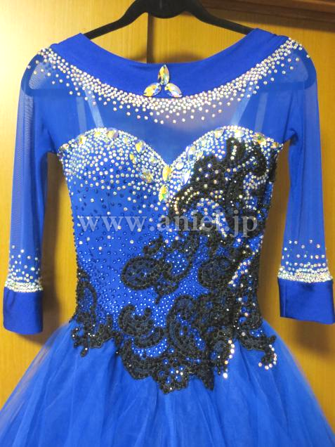 黒のレースの上には黒い石、ブルーのボデイにはブルーの石がびっしり貼られています。