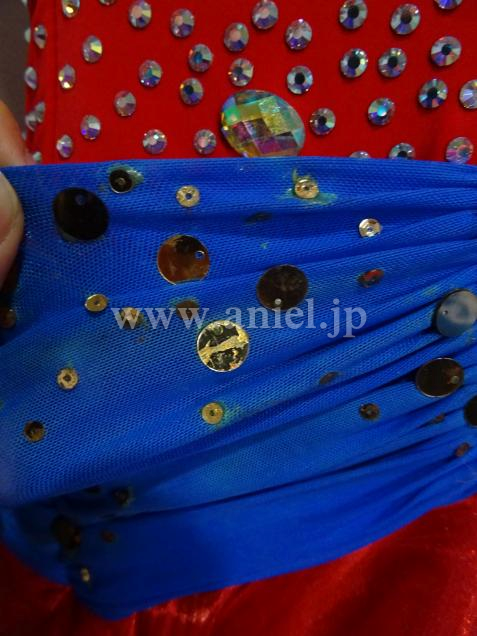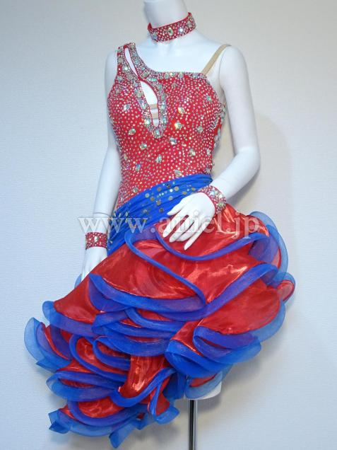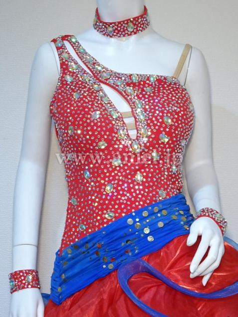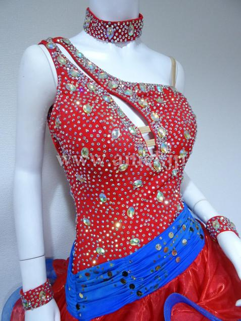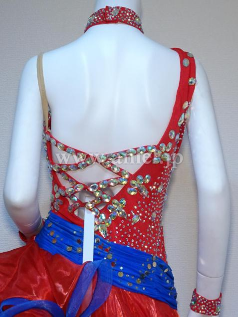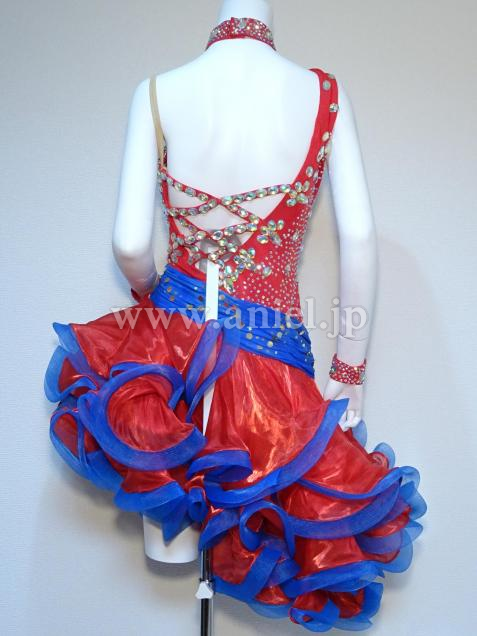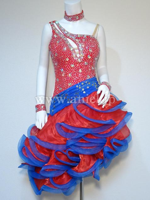 赤に青のコントラストがよく映えるドレスです。