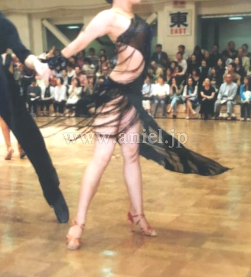 素材は透け感のある黒い生地と、ベロア生地です。フリンジが付いているので動きも出ます。