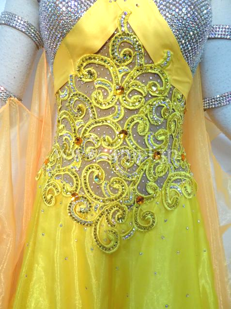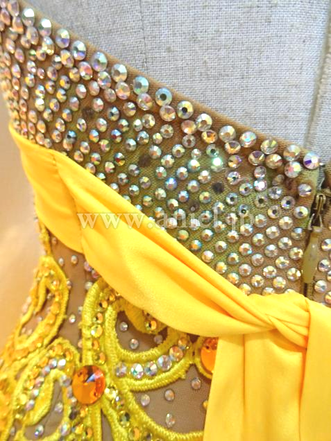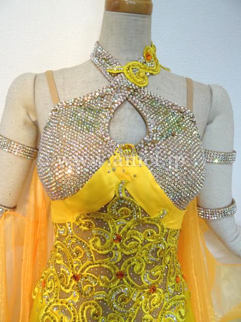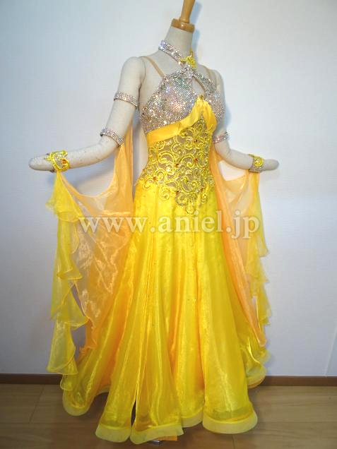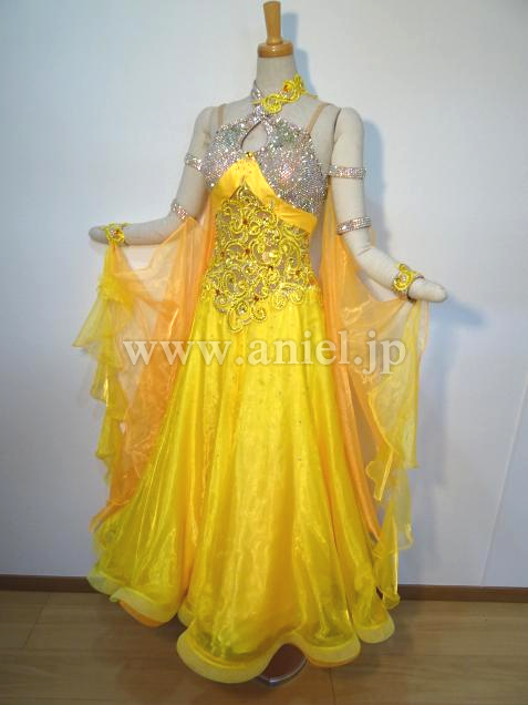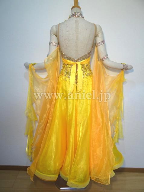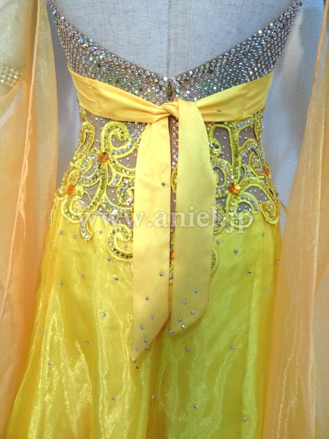 華やかな黄色のドレスです。