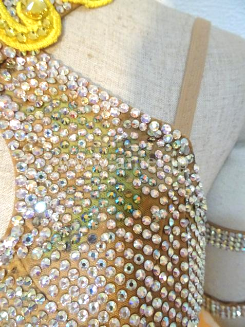 胸元にはストーンがびっしり、ボディはモチーフレースで装飾されています。