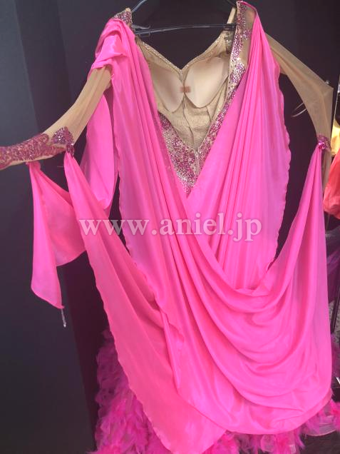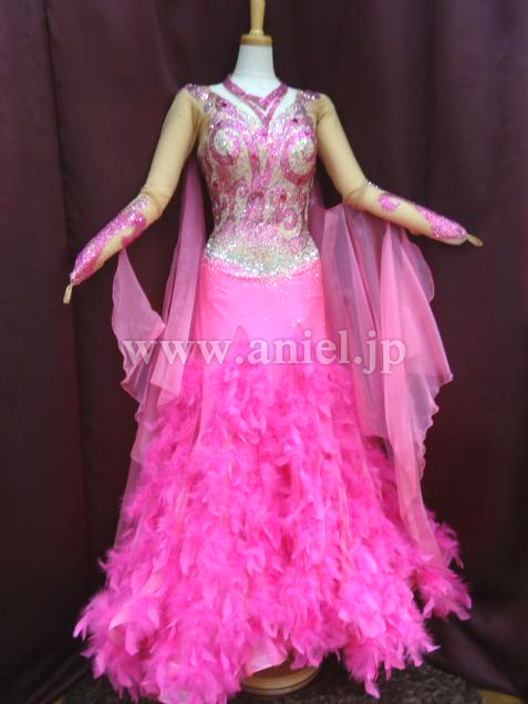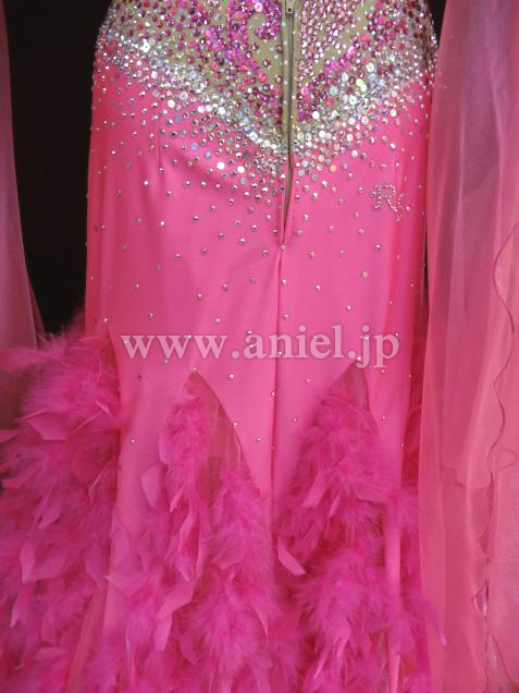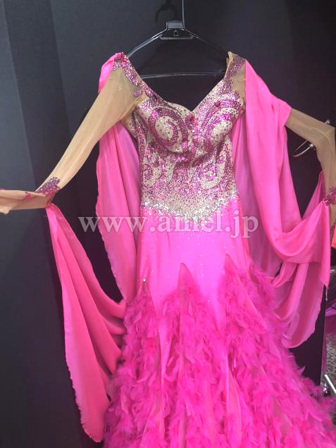 裾にはたっぷりと羽根がつけられとてもゴージャスなイメージです。