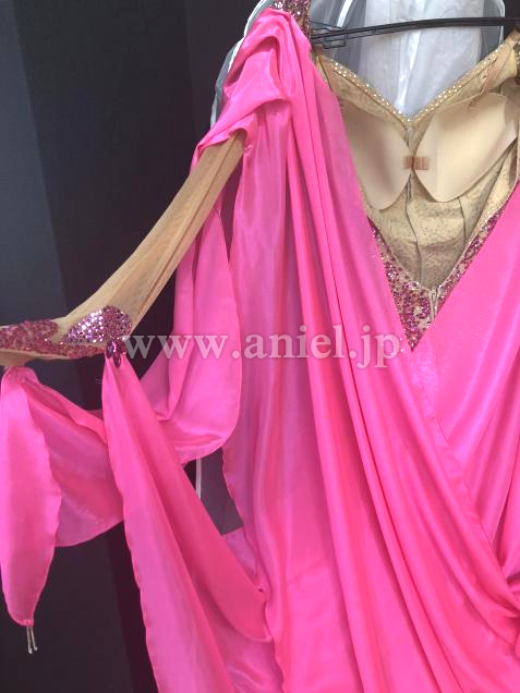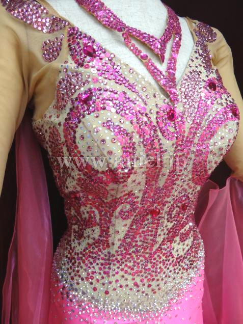 ボディはたくさんのスパンコールとストーンで模様が描かれ華やかです。