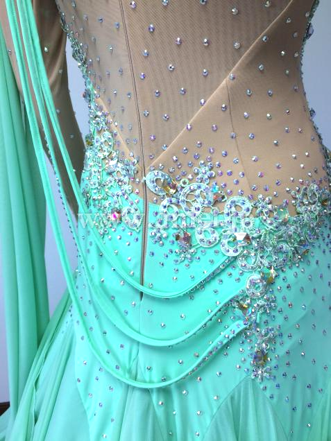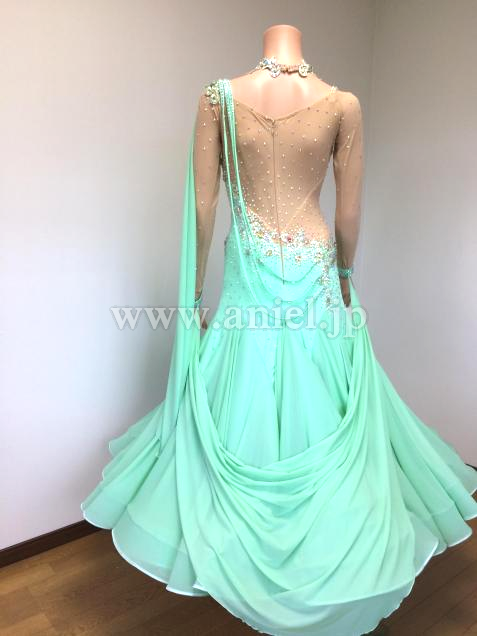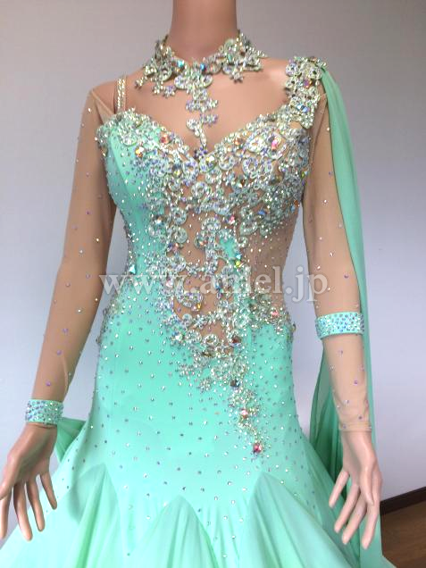 遠目にはヌーディに見えますが、ボディーはライクラ、袖も背中もヌードカラーのストレッチメッシュ生地で覆っているの で、露出が苦手な方も安心して着用いただけます