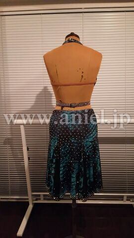 深みのあるブルーグリーンの豹柄生地にストーンがしっかり貼られており