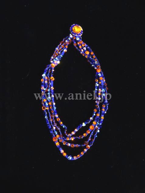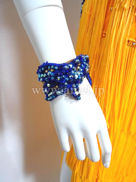 差し色のブルー部分にはモチーフレースとストーンがたっぷり使われ非常に華やか。
