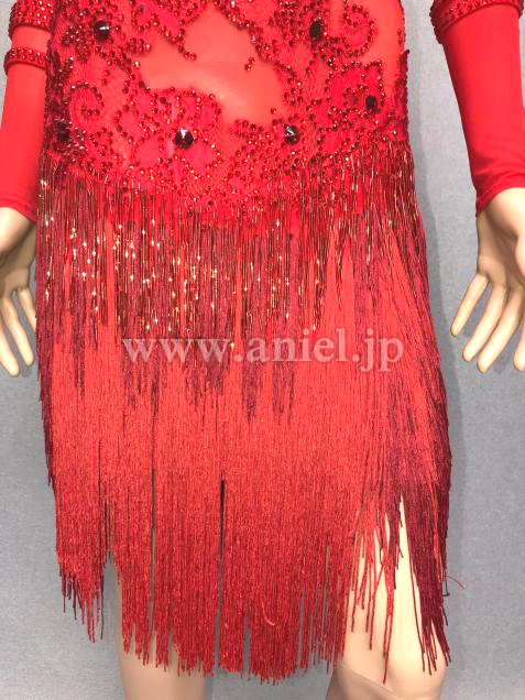 スカートはフリンジの上にレッドビーズフリンジがぐるりと2重に施されています。