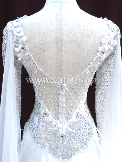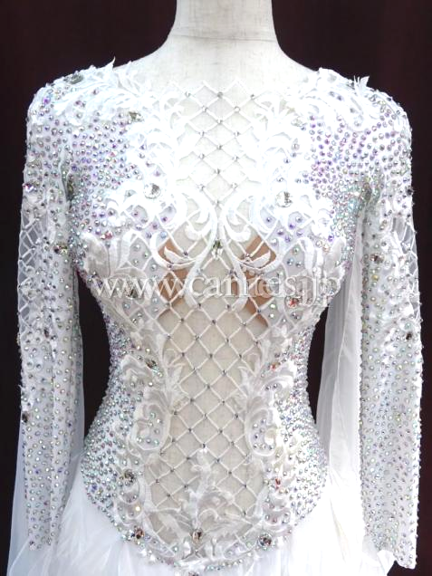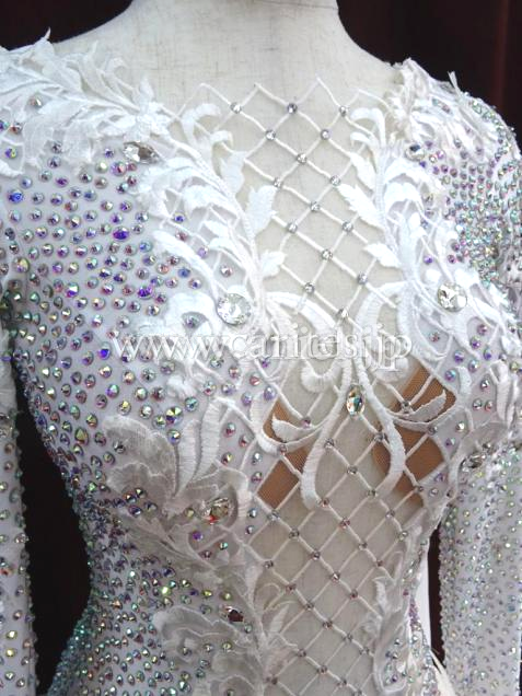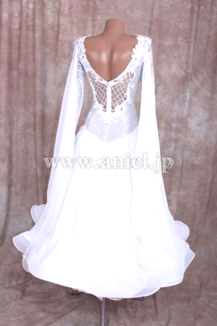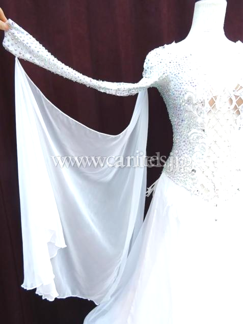 エレガントな白を基調としたドレス。透け感のある生地と組み合わ合わせて上品にデザインしています。