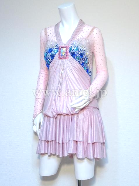 光沢のあるピンクの生地を使用したドレスです。