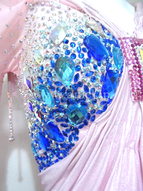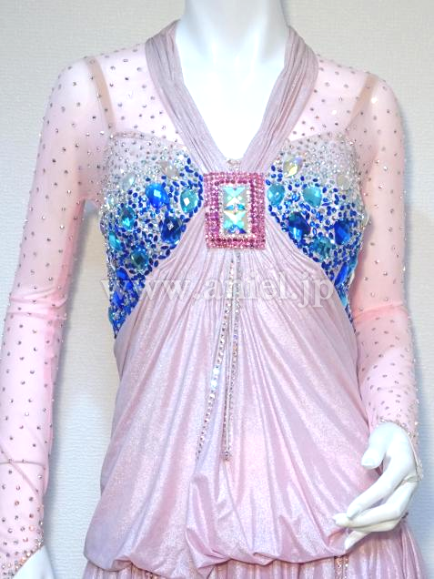 胸元は青のストーンで装飾されています。