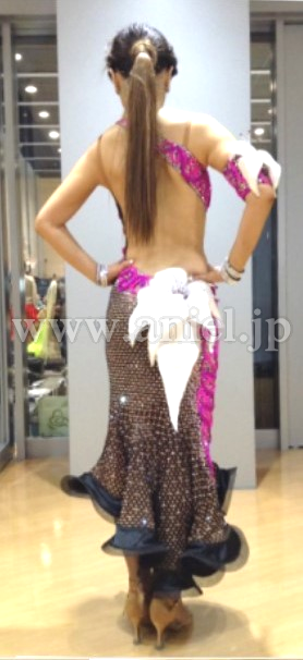 競技会では、毎回必ず、ドレス販売店の方や知らない方から「ステキ」と褒められる、とてもよく目立つドレスです。