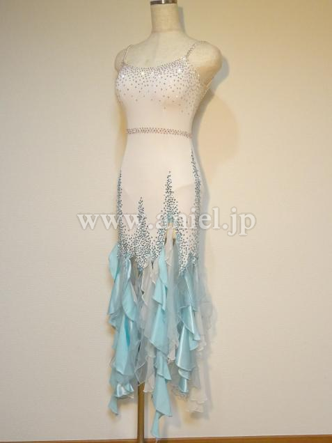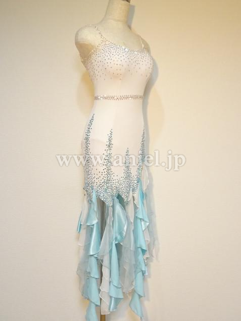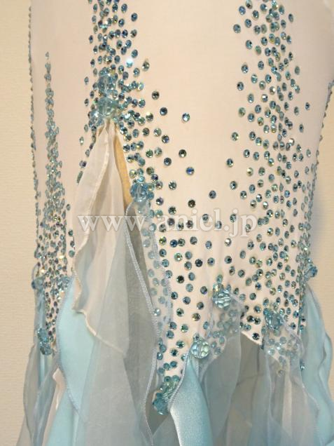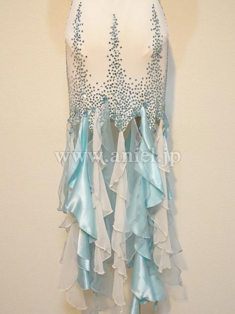 白と水色のフリルを縦に使用したスカート。
