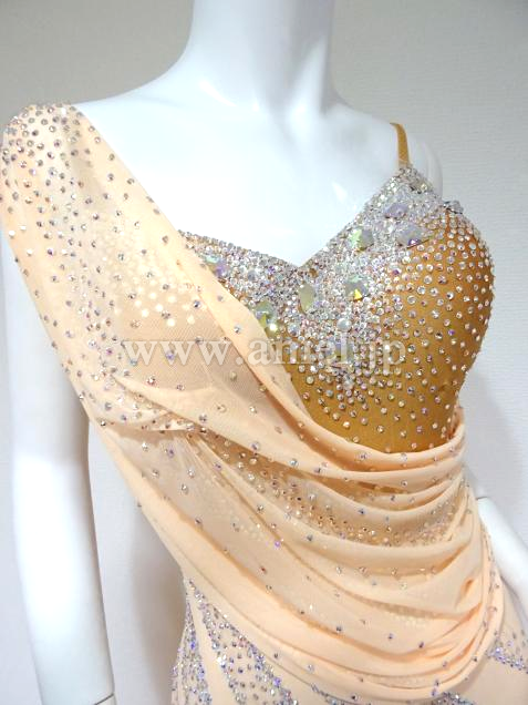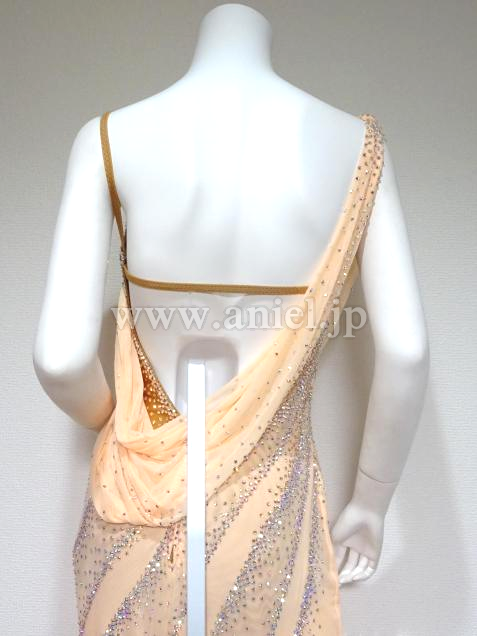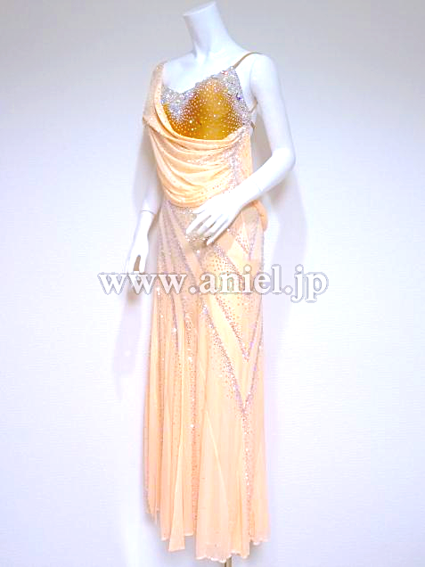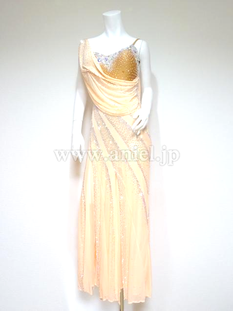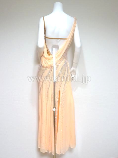 淡いピンクベージュのメッシュを使った美しいロングドレスです。