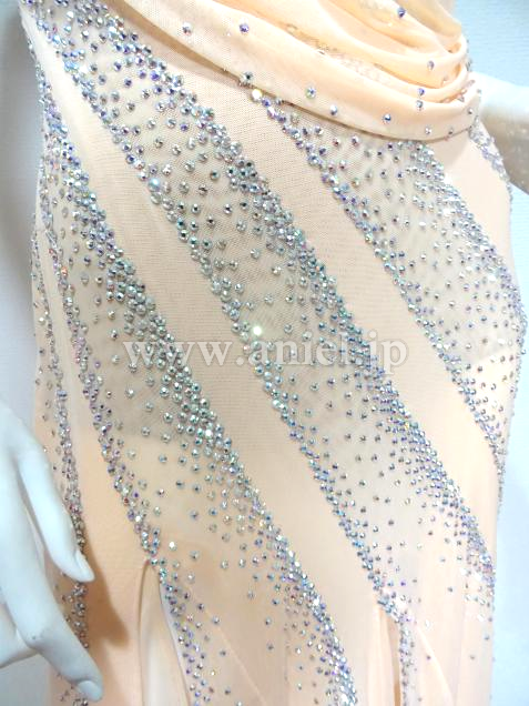 ボディやメッシュ生地にはたくさんのスワロフスキーストーンが装飾されとてもゴージャスできらびやか。