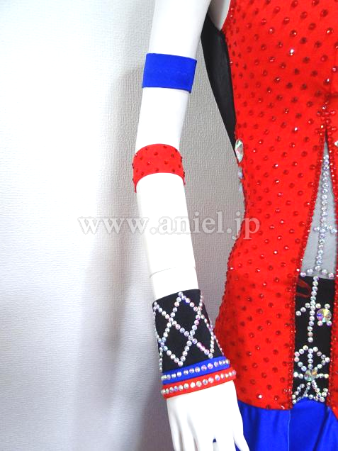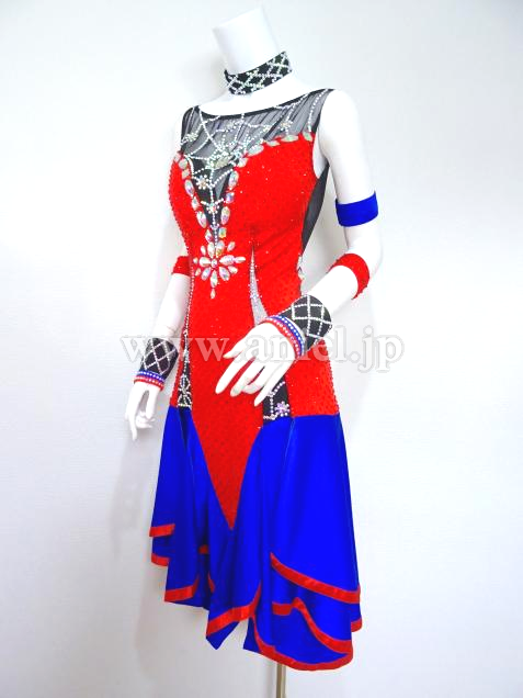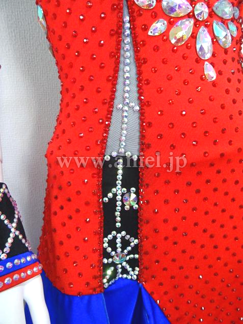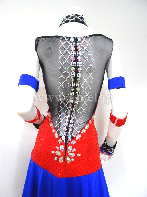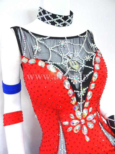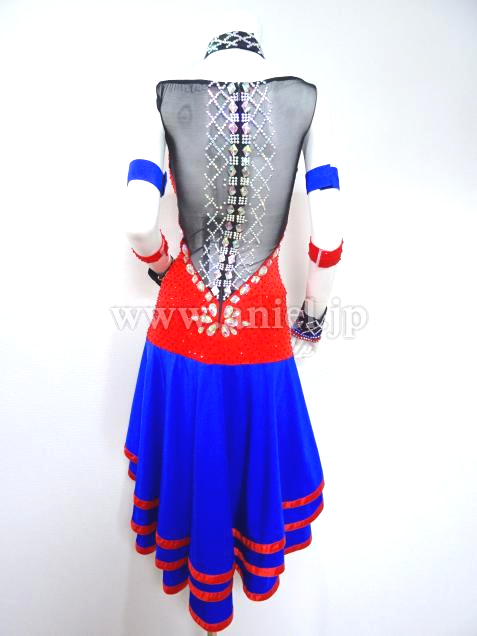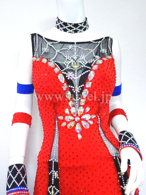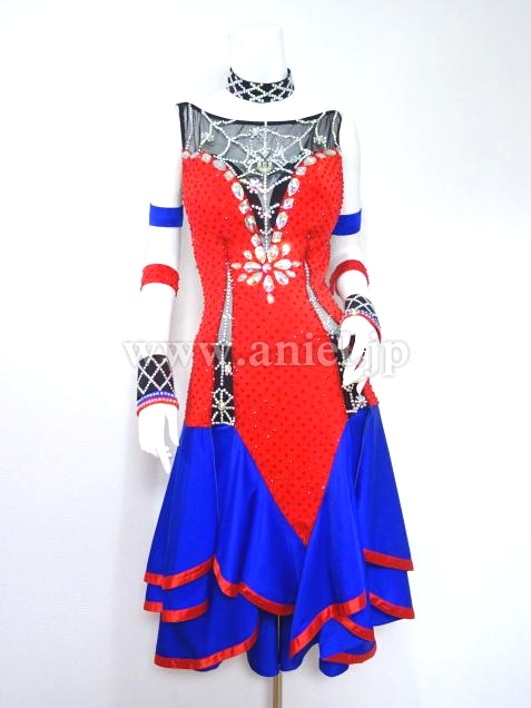 赤と青の組み合わせに胸元の蜘蛛の巣模様がアクセントになっているドレスです。