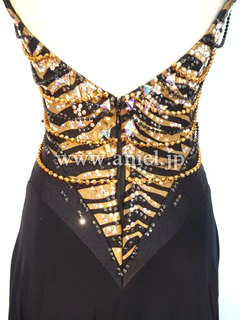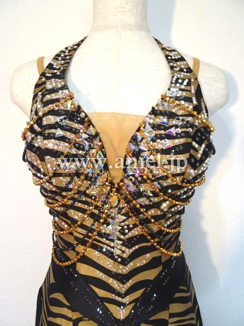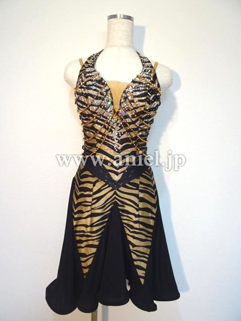 ゴールドの豹柄がかっこいいワンピースドレスです。