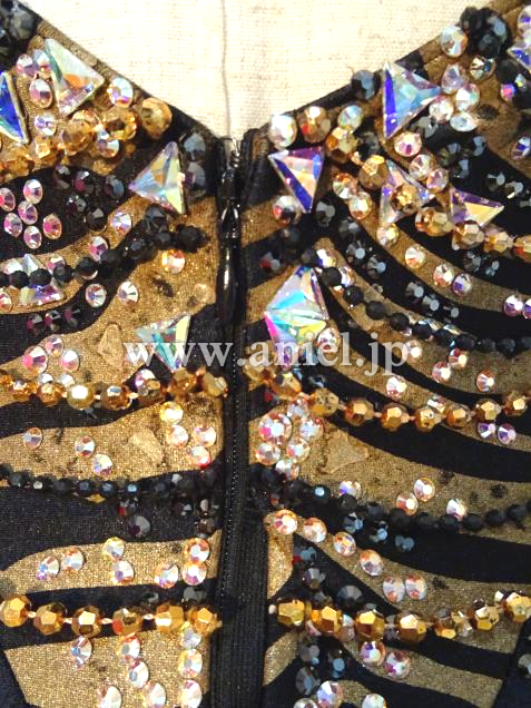 チャコットで製作したドレスに自分でストーンやチェーンを追加いたしました。