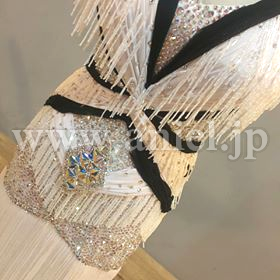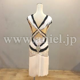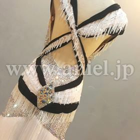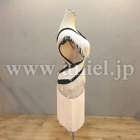 フリンジスカートがよく動き、エレガントな黒白デザイン。