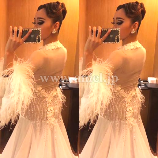 ボディはレースやスワロフスキーストーンでゴージャスに装飾されています。