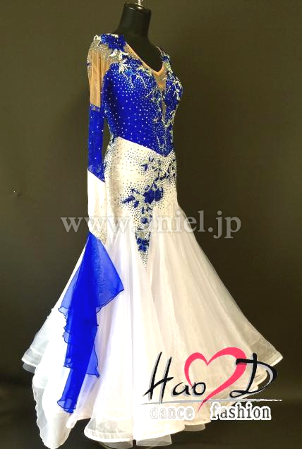 露出が少なく、肩からヒップに流れる繊細なモチーフと石の飾りは大変豪華