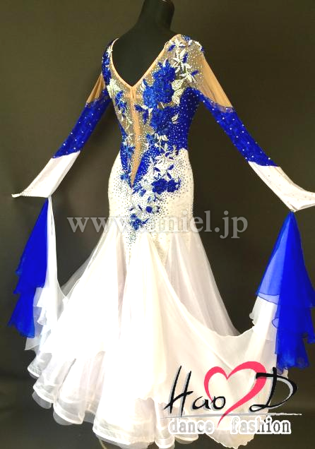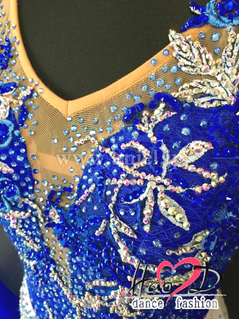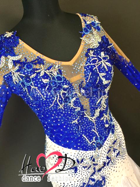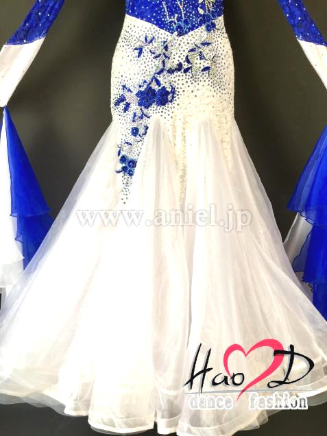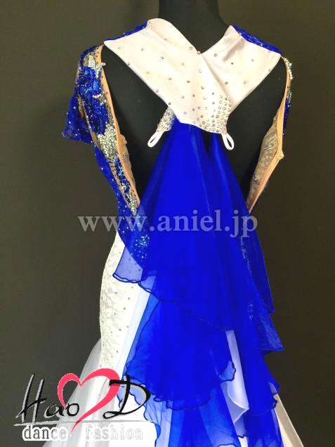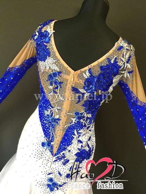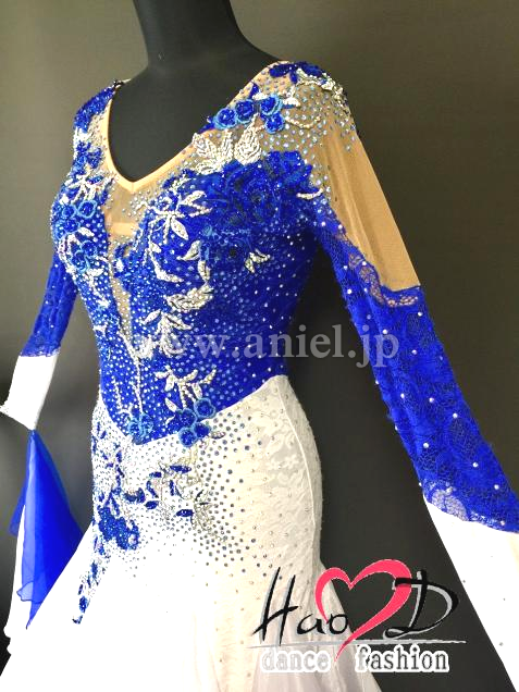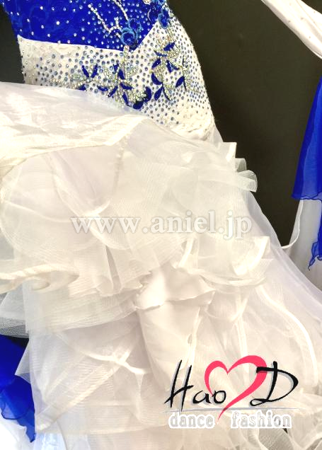 青と白の2wayストレッチ・ライクラ生地に、ストレッチ・レース生地を被せて立体感UP
