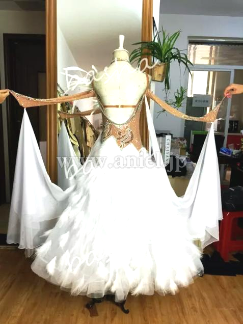 羽根たっぷりのスカートが存在感抜群のドレスです。