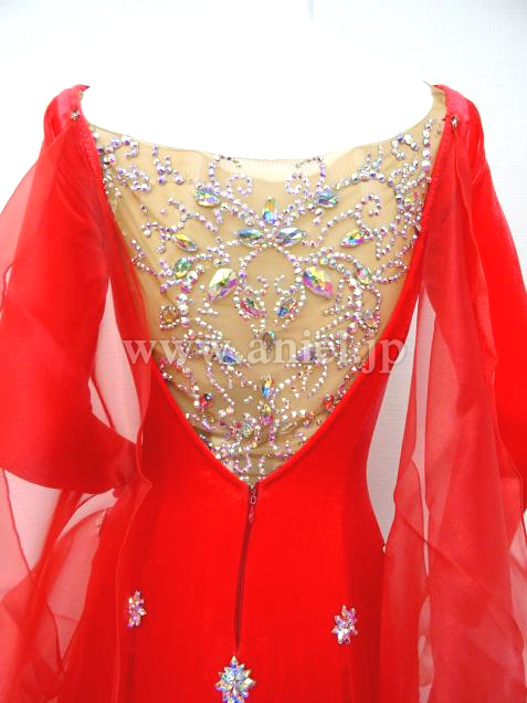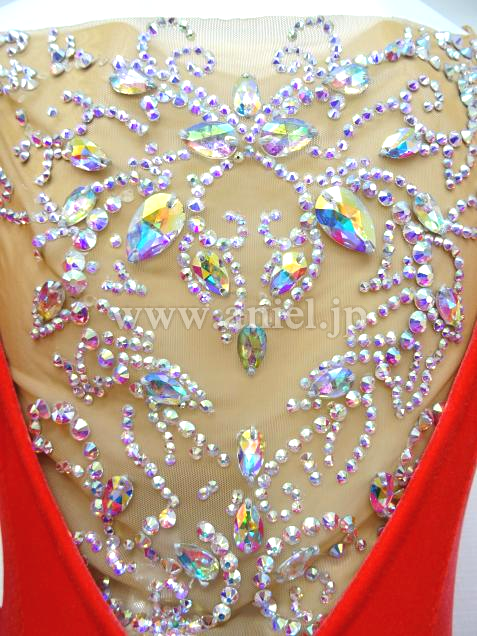 ストーンが美しく貼られた背中のネットは別付きレオタードになっていて着脱可能です。