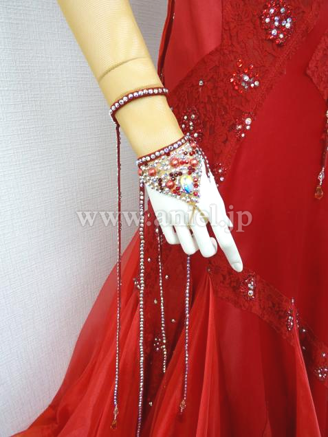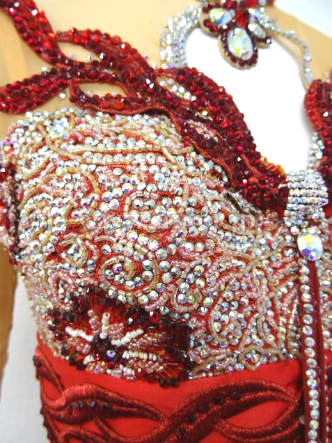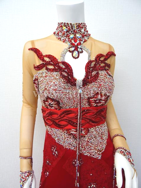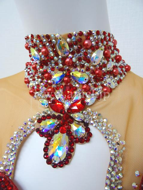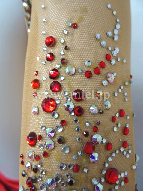 胸元はビーズ刺繍にストーンがびっしり貼られていて非常にきらびやか。