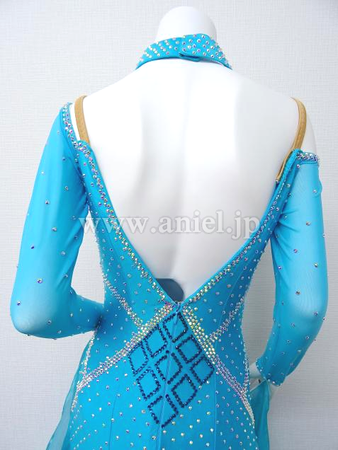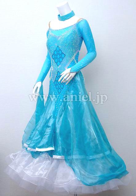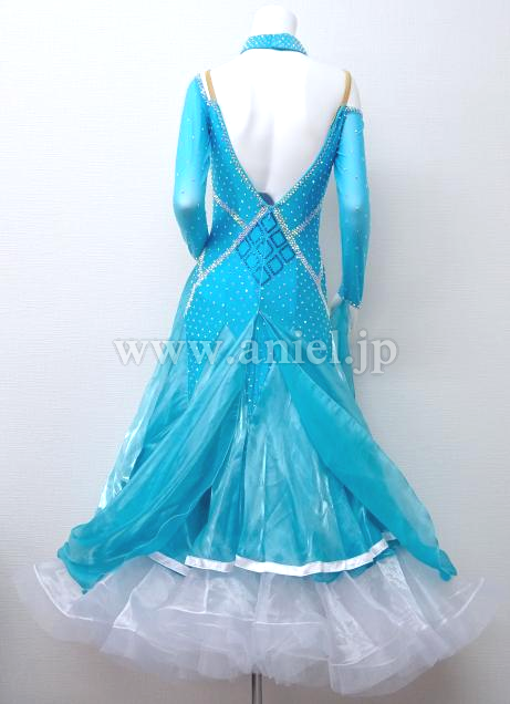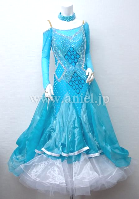 水色にホワイトのスカートが爽やかなドレスです。