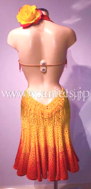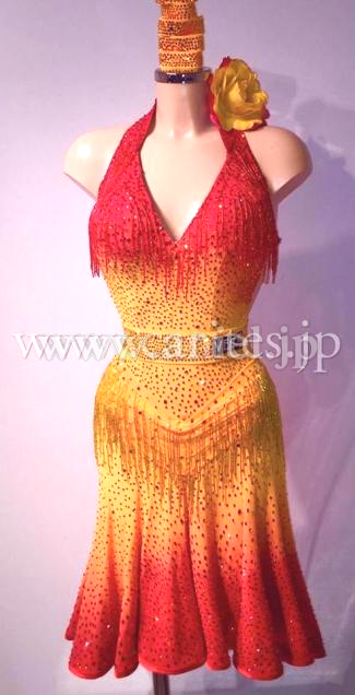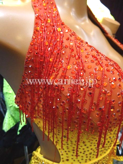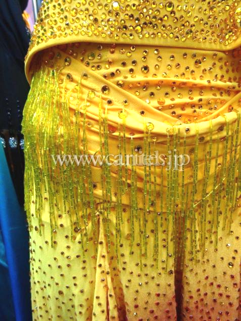 カラースワロフスキーとビーズフリンジが、布のグラデーションに合わせて装飾されています。