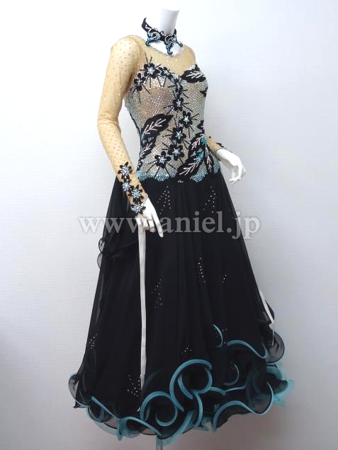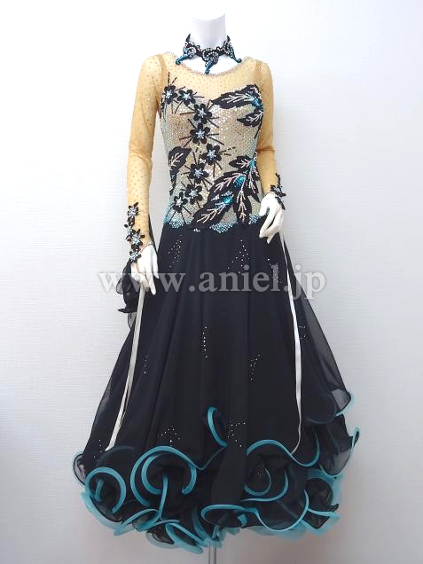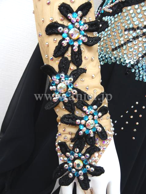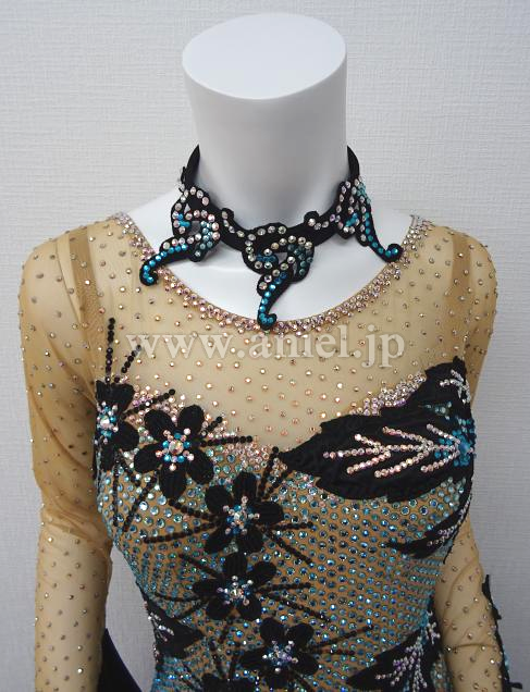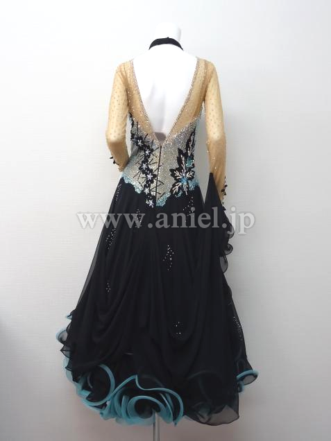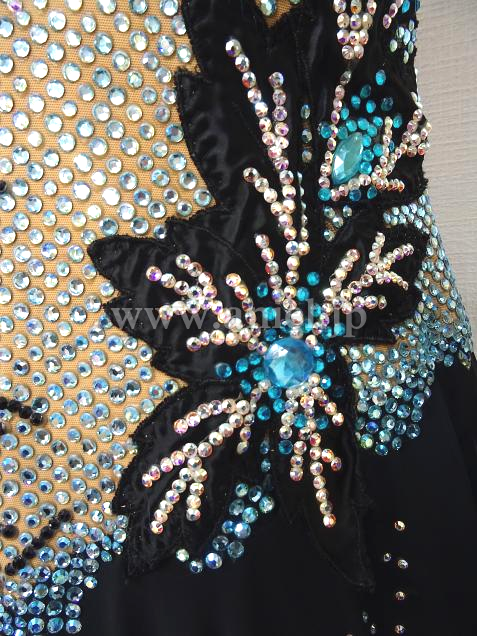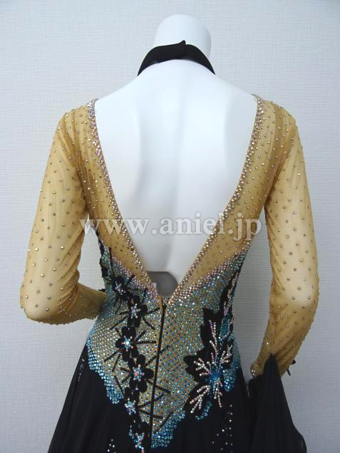 ベージュのボディにストーンがびっしり貼られているゴージャスなドレスです。