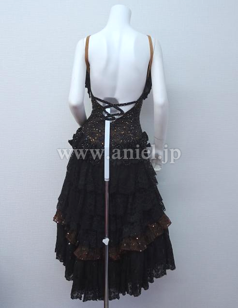 レース生地を使ったティアードのスカートが可愛らしいドレスです。